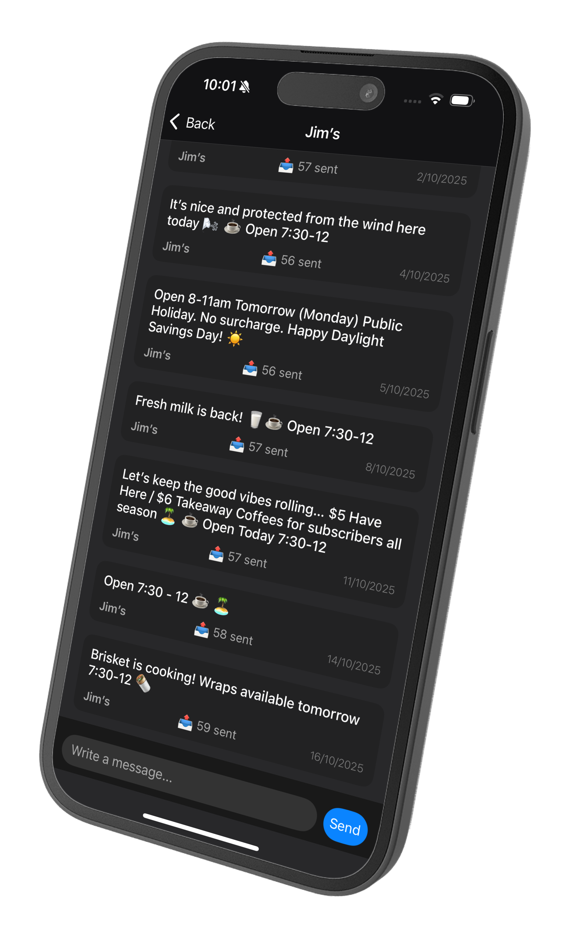 Tap the paper plane button to send messages from your profile to all Lord Howe Island subscribers. We are working hard to encourage all Island visitors to subscribe to this broadcast.
