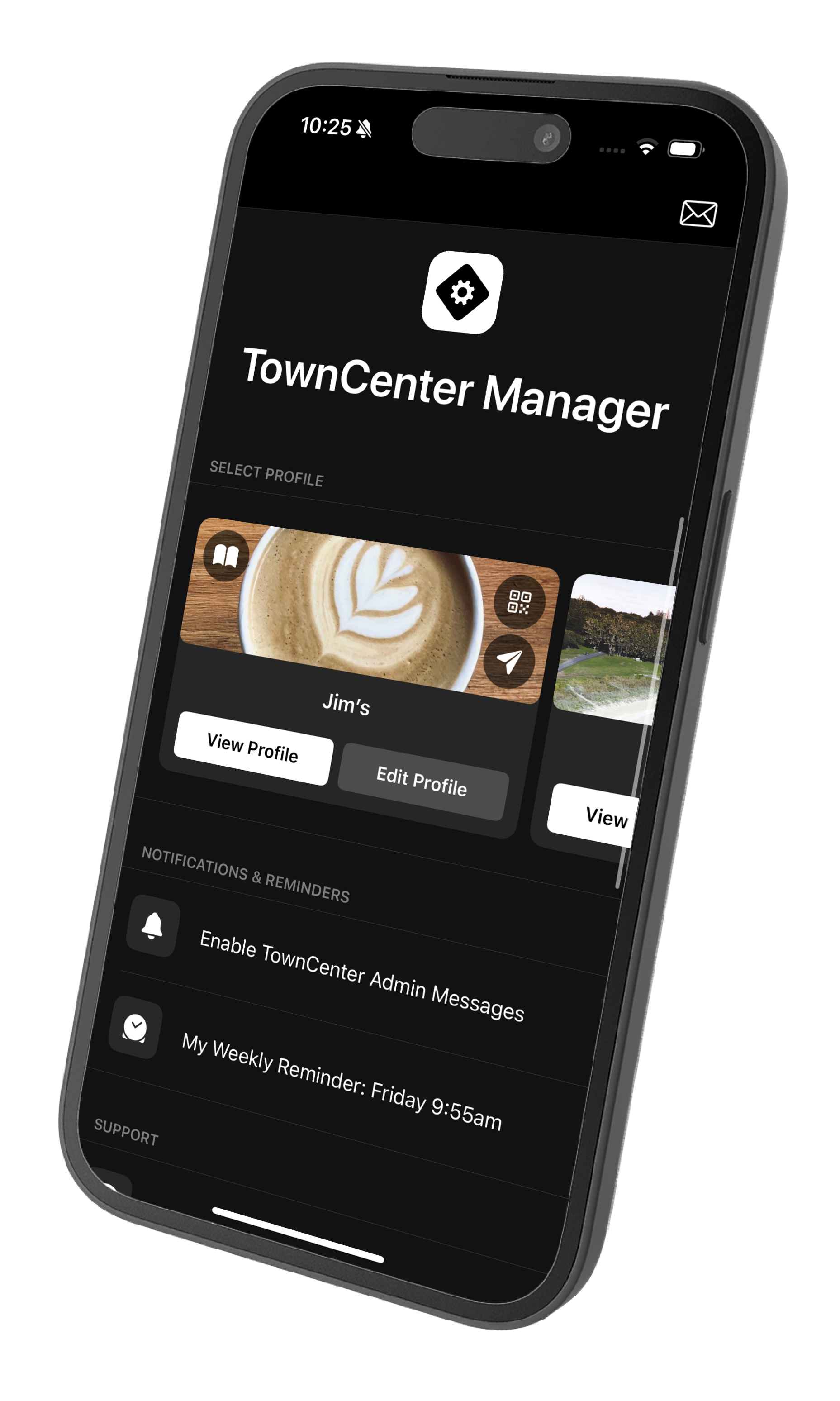 Tap the View Profile button to see your profile the way your visitors see your profile on TownCenter.